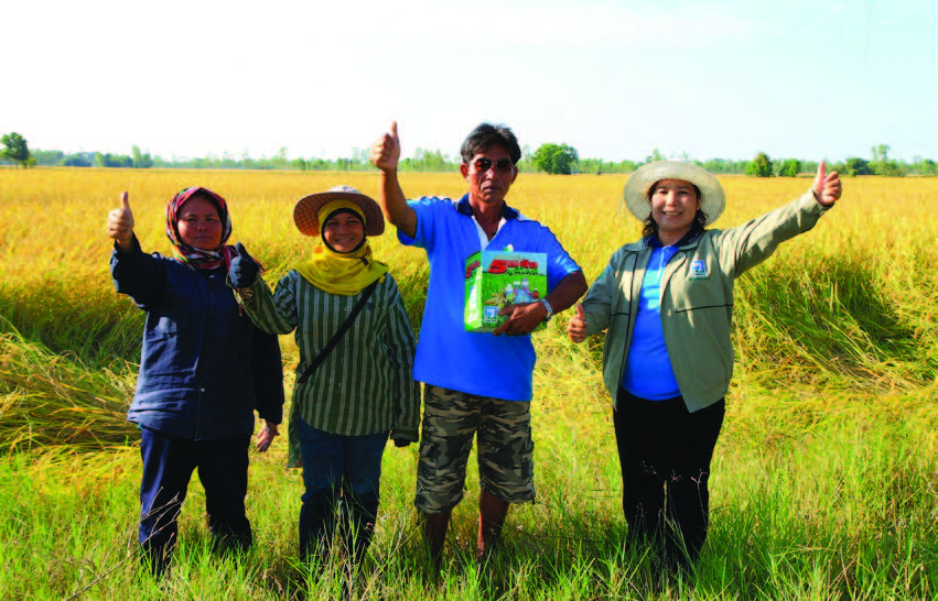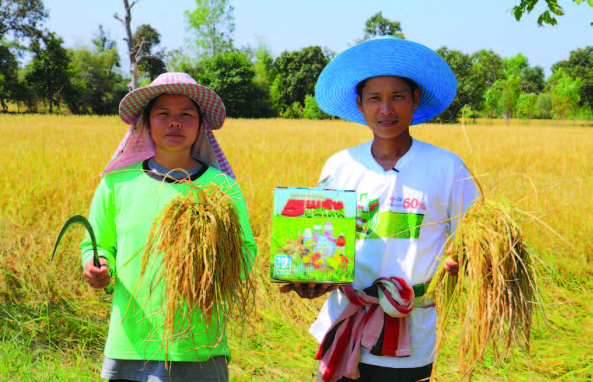 - หว่านปุ๋ยครั้งที่ 3 เมื่อข้าวเริ่มแทงรวงไม่เกิน 10% ด้วย ยูเรีย + สารเพิ่มประสิทธิภาพปุ๋ย “ยูโอนิกซ์” อัตรา 5 กก./ไร่ ทำให้ข้าวแทงรวงสม่ำสมอ รวงใหญ่ ใบธงกว้าง ผลผลิตสูง